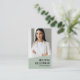 This sleek and simple vertical business card is perfect for corporate brands, small businesses, consultants, freelancers, or any professional looking for a modern, clean aesthetic. The front of the card features a sage green background with your photo, company logo, name, and title or business name in all black fonts, creating a professional yet personalized touch.