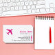 The front design features a crisp white background with a fun, pink colored airplane image on the left corner. Personalize it with your name in the same fun pink colored font. Below your name, in a sleek black font, add your profession or title. To the left of the hot pink colored icons, add your contact information (telephone number, e-mail, website, mailing address). Turn over to the back to personalize the business card design further. Add a custom URL to create a scannable QR code and add your scanning instructions. Make sure you test the QR code image with your camera prior to placing your order.