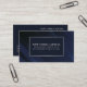 Carte de visite professionnel avec arrière - plan bleu dégradé avec cadre argenté sur le devant, et typographie serif classique sur les deux côtés. Ce carte de visite moderne offre des détails sur le nom, les services et l'adresse de l'entreprise, ainsi que votre nom, titre, numéro de téléphone et adresse e-mail avec de petites icônes élégantes. Pour ajouter d'autres éléments à la carte tels que le logo, le graphique, le slogan ou plus d'informations, vous pouvez utiliser l'outil de conception fourni pour la customiser plus loin. Ce carte de visite est idéal pour toute entreprise ou profession. Plusieurs styles de papier sont disponibles, avec des coins arrondis en option.
