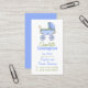 Carte de visite fantaisiste pour jeune fille au pair, avec des graphiques d'une poussette bébé colorée et mignonne en haut. Le dos de la carte est d'un bleu uni. Personnalisez le texte selon vos besoins.