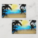 Carte de visite professionnelle tropicale de jour avec plage et palmiers. Personnalisez avec n'importe quel texte.