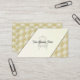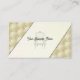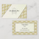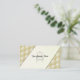Un carte de visite pour un propriétaire professionnel d'un magasin d'ameublement. Personnalisable avec vos informations. Tissu d'or et chaise de contour noir devant la carte.