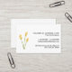 Ce carte de visite est formaté pour les dimensions européennes. Cette élégante carte de visite est conçue avec une simple fleur à trois tiges avec des pétales jaunes. Customisez votre nom, profession, coordonnées et adresse dans une police de caractères noire classique. Utilisez les champs modèle pour saisir vos propres informations et supprimer ce qui n'est pas nécessaire, comme un numéro de fax, ou ajouter d'autres informations au besoin. L'inverse affiche une fleur plus petite.
