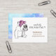 Carte de visite de papier mat de minimaliste, élégant et original de professionnel de carré. Dessin d'art de bouledogue français et photo noirs et blancs de roses. Arrière - plan bleu et pourpre - photo de marbre.