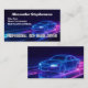 carte de visite à thème bleu cool rétro et violet néon pour un service de conduite de voiture ou de limousine conducteur. Avec l'image d'une berline générée par un cool sur la route la nuit. Faites savoir aux coureurs et aux clients que vous êtes le conducteur de service en partage de vitesse en portant ou en affichant cet équipement cool sur votre personne ou votre voiture! Le covoiturage est la nouvelle grande façon écologique de voyager en faisant passer une voiture à travers votre smartphone et en aidant un autre habitant de la ville à gagner de l'argent en même temps.