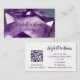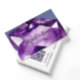Ce luxueux carte de visite de glam est doté d'un améthyste et d'une pierre à gemme violette. Une beauté naturelle éclatante créée avec un programme d'IA. Élégant script manuscrit. A l'arrière se trouve un code qr scannable personnalisé et les médias sociaux. Parfait pour les maquilleurs, la beauté, le spa et le massage, les décorateurs, les planificateurs mariages et événements et plus encore.