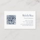 Code QR Botanical floral carte de visite, avec un design simple marguerite sur un arrière - plan bleu marine. Avec des lettres personnalisables bleu marine et blanc, vous pouvez ajouter vos propres informations. Vous ajoutez votre site Web au champ de code QR pour que vos clients puissent l'analyser. Idéal pour promouvoir votre entreprise de design avec un style élégant.