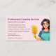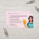 Promote your cleaning business with this modern pink business card featuring a friendly maid illustration and an integrated QR code for instant scheduling.