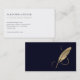 Présentez vos références en toute confiance avec nos Cartes de visite Simple Modern Gold Quill. Un front simple et propre avec de l'espace pour votre nom, titre, et les informations de contact présentés dans une élégante typographie sur blanc. Sur le dos, une plumes d'or luxueuse sur fond de marine donne un ton professionnel qui offre une promesse tactile de qualité et de discrétion.