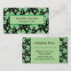 Ajoutez un peu de chance à un carte de visite professionnel. Personnalisez un carte de visite de conception de shamrock à quatre feuilles à la mode pour mettre en évidence votre nom, profession/titre, entreprise et coordonnées. shamrock irlandais de vert et de noir crée une présentation unique. Les Cartes de visite facilitent la mémoire des gens. CONSEIL: Rendez votre carte de visite encore plus mémorable et déposez un crochet de mémoire personnalisé sur votre carte avant de la remettre à quelqu'un.