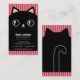 Le beau carte de visite a conçu avec une illustration originale d'un visage noir mignon de chat de minou de kawaii avec de grands yeux brillants noirs. C'est deux copie de côté où de la partie antérieure est la partie antérieure d'un chaton, avec son visage mignon et de l'arrière est l'arrière d'un chat avec sa queue. Toute l'information de contact se trouvent sur la face frontale de la carte de profil. L'arrière - plan est rose rayé. Carte parfaite de profil pour des amoureux de les chats aussi bien que pour des vétérinaires ou des stylistes de chat.