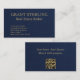 Carte De Visite Real Estate Broker Navy Blue Gold Linen QR Code