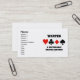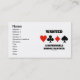Présentez-vous avec une dose de pont wry disant humour avec ce carte de visite personnalisable avec les quatre costumes de carte ainsi que le dicton qui est souvent entendu au Partnership Desk dans un tournoi de bridge : "Recherché A Dependable Bridge Partner".