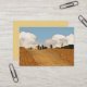 Cette carte de commerce d'artiste photographique d'art met en valeur un paysage agricole. C'est l'automne et la récolte des céréales est en cours. Au premier plan, les lignes jaunes et brunes sont partiellement coupées. En surplomb de la colline se trouve la ferme avec ses silos. Des cumulus blancs purs et un ciel bleu complètent la composition.