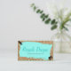 Partagez votre intérêt pour le recyclage avec ce modèle design carte de visite d'un morceau de papier d'aquamarine abîmé attaché à une photo de fond d'une planche de liège avec deux broches de bâton noir en haut à gauche et en bas à droite du papier. Personnalisez le texte pour l'avant et l'arrière, supprimez le texte ou cliquez sur personnaliser pour sélectionner un style, une taille et une couleur de type que vous souhaitez.