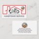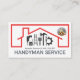 An all white cover features a red building frame that has a handyman tools design. The tools can represent some of the services that you might offer. Just below this lies your contact details and the business name "HANDYMAN SERVICE" which you can change. Over at the top right corner is a "electric saw-home" logo you can use. The logo can also act as your sun.
