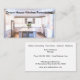Construction et remodelage modèle carte de visite avec l'image d'une cuisine nouvellement remodelée dans l'arrière - plan et le nom de votre entreprise présenté sur le devant et vos détails sur le revers organisé afin que vous pouvez customiser le design en ligne. Utilisez notre image sur nos cartes ou remplacez l'image de la cuisine par la vôtre.