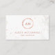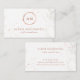 Ce carte de visite élégant et moderne comporte un cercle rose d'or de faux à la mode et éclabousse sur un arrière - plan de marbre blanc de regard, du texte coloré par rose assorti.