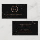 Ce carte de visite élégant et moderne comporte un cercle rose d'or de faux à la mode et éclabousse sur un arrière - plan noir, du texte coloré par rose assorti.