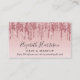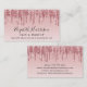 Faites bonne impression avec ce carte de visite promotionnel chic avec des gouttes de parties scintillant en or rose et rose et votre nom dans un script branché contre un arrière - plan en or rose. Customisez votre réduction ou offre cadeau. Parfait pour les salons de beauté, les maquilleurs, les coiffeurs et les esthéticiennes.