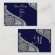 Carte De Visite RENAISSANCE Monogramme 2 bleu foncé