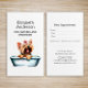 Aquarelle mignonne de toiletteur de chien illustration d'un chien chiot heureux Yorkshire Terrier (Yorkie) dans une baignoire. Idéal pour les toiletteurs qui se spécialisent dans la baignade et le toilettage des chiens. Prêt à être personnalisé avec vos informations personnalisées et un espace pour ajouter le rendez-vous du client. Ajoutez votre nom commercial, titre, adresse, numéro de téléphone, courriel et site Web. Vous pouvez ajouter plus d'informations ou en supprimer.
