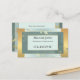 Carte de visite professionnelle avec un design moderne comportant des feuilles tourbillonnantes sur un fond géométrique vert et or. Une belle carte de visite pour une maquilleuse, une esthéticienne ou une masseuse.