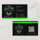 Réparation automobile professionnelle, Carte de visite mécanique automobile. Doté d'un design de voiture élégant. Vert et Noir. Personnalisez et ajoutez vos détails professionnels. Ajoutez votre code QR à votre site web.
