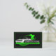 Réparation automobile professionnelle, Carte de visite mécanique automobile. Doté d'un design de voiture élégant. Vert et Noir. Personnalisez et ajoutez vos détails professionnels. Ajoutez votre code QR à votre site web.