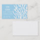 Un mignon carte de visite d'inspiration corallienne blanche, adapté à un restaurant de fruits de mer ou à une restauration de fruits de mer. Illustration dessinée à la main de corail blanc contre un arrière - plan bleu pastel avec texte entièrement personnalisable. Pour tous les amateurs de fruits de mer. Sous le thème mer.