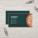 Pour votre pizzeria restaurant, food truck, home livraison food service ou cuisine chef, ce carte de visite élégant sera parfait. Il est livré avec la moitié d'une pizza Margherita posée sur une planche en bois et des informations personnalisables ornées d'icônes sur un arrière - plan vert foncé.