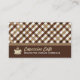 Un motif à damiers dans les tons marron, crème et acajou donne une ambiance rétro à ce carte de visite pour n'importe quel café. Le motif constitue la partie supérieure du carte de visite à l'avant avec un panneau brun riche en dessous qui affiche une tasse de café graphique à côté du nom de l'entreprise et un slogan ou une description. Le verso affiche les coordonnées dans le panneau marron en haut avec le motif coché ci-dessous. Idéal pour un café-bar, un restaurant, un café ou un dîner, un marchand de café ou un barista. Disponible avec les produits correspondants. com