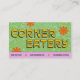 Modèle de carte de visite rétro gratuit. Faites la promotion de votre petite entreprise de restauration dans le style avec ce design super, ludique et heureux en émeraude, lilas, or, vert clair, orange et noir.
