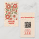 Carte De Visite Retro Green Red QR Code Super Floral Funky Boho