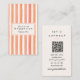 Carte De Visite Retro Orange Pink Hand Drawn Stripes Girly QR Code