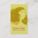 The card features a flat design illustration of a stylish woman with long, wavy olive green hair defined brows on a lime green background— a bold yet elegant combination that captures attention instantly. The clean lines, subtle retro-boho vibe, and modern color palette create a distinctive look that perfectly fits the beauty and fashion world.
