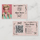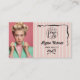 Carte De Visite Retro Pink Striped Quirky Hair photo qr code Logo