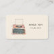 Carte de visite mignonne pour écrivains avec illustration aquarelle d'une machine à écrire rétro. Idéal pour les auteurs, écrivains indépendants, journalistes, éditeurs
