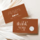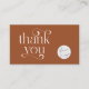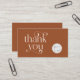 Carte simple d'insertion pour petite entreprise avec un texte rétro tourbillonnant qui dit "merci". Vous pouvez ajouter votre logo et un message simple au verso, ainsi que vos informations sur les réseaux sociaux et le site web. La couleur est en terre cuite.