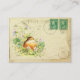 Un peu d'éphémère avec mon tableau d'un petit robin. Le petit bébé oiseau est assis dans les violets. Le arrière - plan est une carte postale ancienne et un peu d'écriture de scénario.