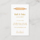 Carte De Visite Rolling Pin boulangerie Chef Traiteur Gold Script