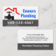 Cover features a red rooftop building with a leaking faucet design. To its right lies your business name with the contact details at the base of the card.