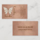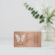 Carte de visite moderne semblant métallique d'or rose chic, avec des graphiques d'un ivoire et des parties scintillantes roses d'or regardant le papillon. Personnalisez le texte de couleur brune, sur l'avant et le dos de la carte, pour adapter à vos besoins d'affaires.