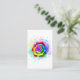 Grand rose fleuri avec pétales arc-en-ciel sur arrière - plan blanc, peint sur des éclaboussures de peinture colorée et lumineuse. 3d