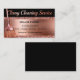 This chic design, perfect for a high-end cleaning or maid service, features a sophisticated black background border and a centerpiece metallic band of shimmering rose gold. The card is highlighted by borders of dazzling rose gold glitter along the top and bottom.