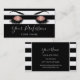 Parties scintillant rose or brillant sourcils et cils sur un Carte de visite Arrière - plan rayé noir et blanc avec typographie en lettres blanches pour le monogramme. Le Rose Gold Microblading Carte de visite est parfait pour les sourcils, les sourcils esthétiques, les sourcils ou les professionnels de la beauté. Veuillez contacter le concepteur pour les articles correspondants