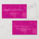 Ces cartes de visite colorés et élégants arborent votre nom dans une écriture manuscrite à la mode blanche avec des tourbillons, sur un arrière - plan d'aquarelle rose vif pour un look à la fois professionnel et tendance.
