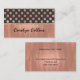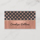 Carte de visite élégant, avec des graphiques d'or rose et de motif de point noir de polka, sur le dessus plan, avec une bande de regard rose de feuille d'or à travers le fond et couvrir le dos de la carte. Personnalisez le texte pour adapter à vos besoins d'affaires. Un beau tient la carte grande pour n'importe quel genre de profession ou d'affaires.