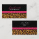 Carte de visite rose moderne élégant de couturier d'empreinte de léopard. En outre disponible dans le rouge foncé. Des polices, la taille de la police, la couleur de police et la position de police peuvent être customisées pour adapter à votre style.