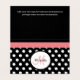 Carte De Visite Rose Noir Blanc Polka Point Monogram Carré